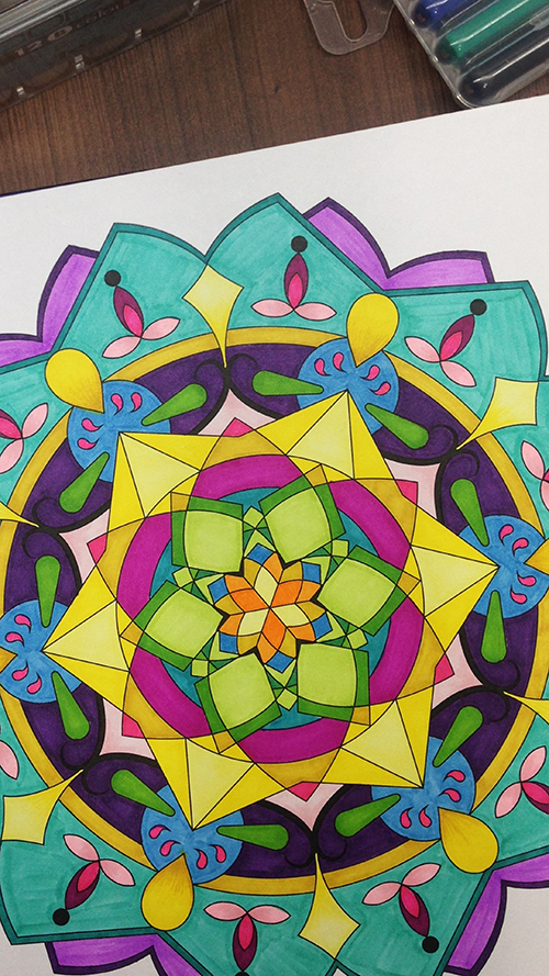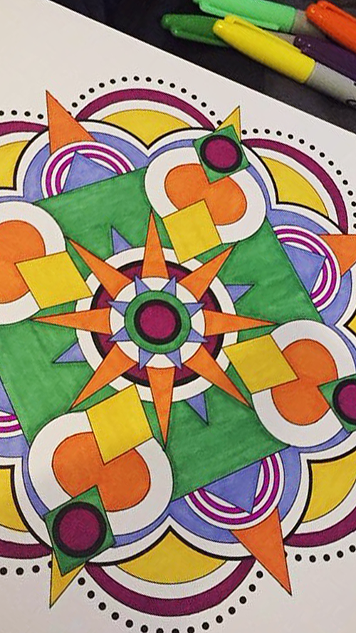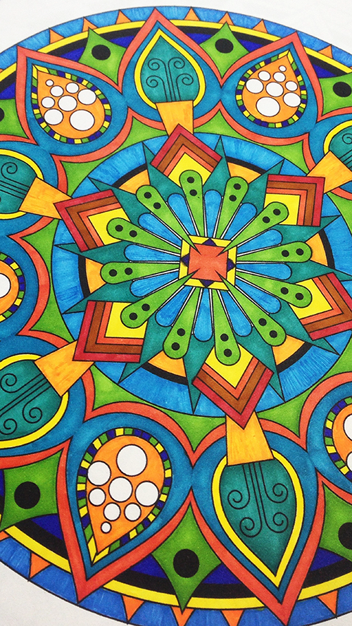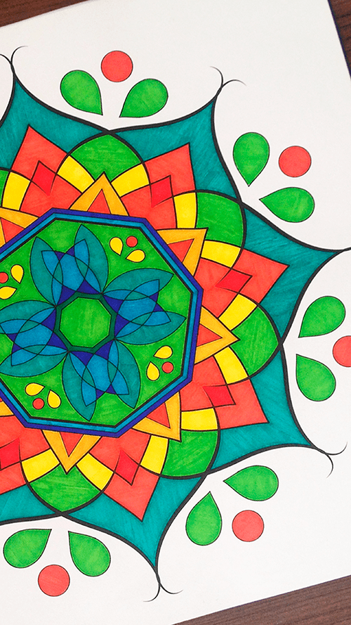 Dibujar, pintar y/o colorear mandalas contribuye al equilibrio de la actividad de los dos hemisferios cerebrales, por lo que se dice que opera la consciencia de centro y unidad, ayudando a ordenar el caos y la dispersión mental. Los mandalas pueden ser utilizados para la meditación, la relajación, mejorar la autoestima, la memoria y la capacidad de concentración, ayudar a combatir la depresión, la ansiedad, el insomnio y el estrés, entre otras cosas.
