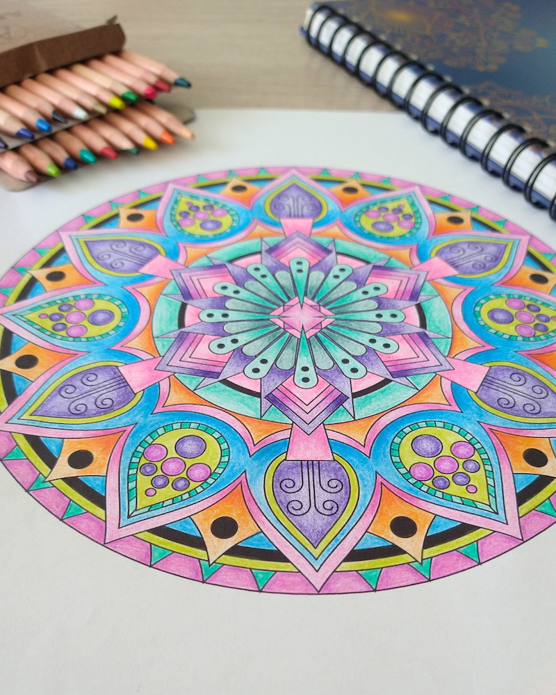 · Los mandalas son útiles para la concentración y ayudan a alcanzar estados de calma. Disminuyen los niveles de ansiedad y estrés, a la vez que fortalecen el proceso creativo. Asimismo, dibujar y colorear mandalas ayuda a centrarse, relajarse y calmar la mente, aportando paz, serenidad, y aumentando la concentración y la creatividad.