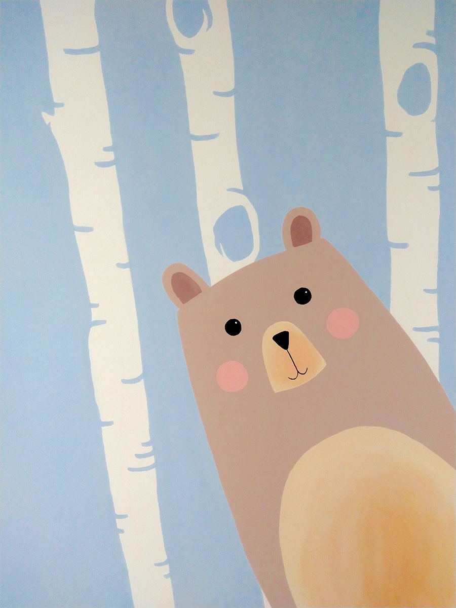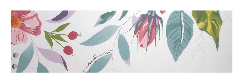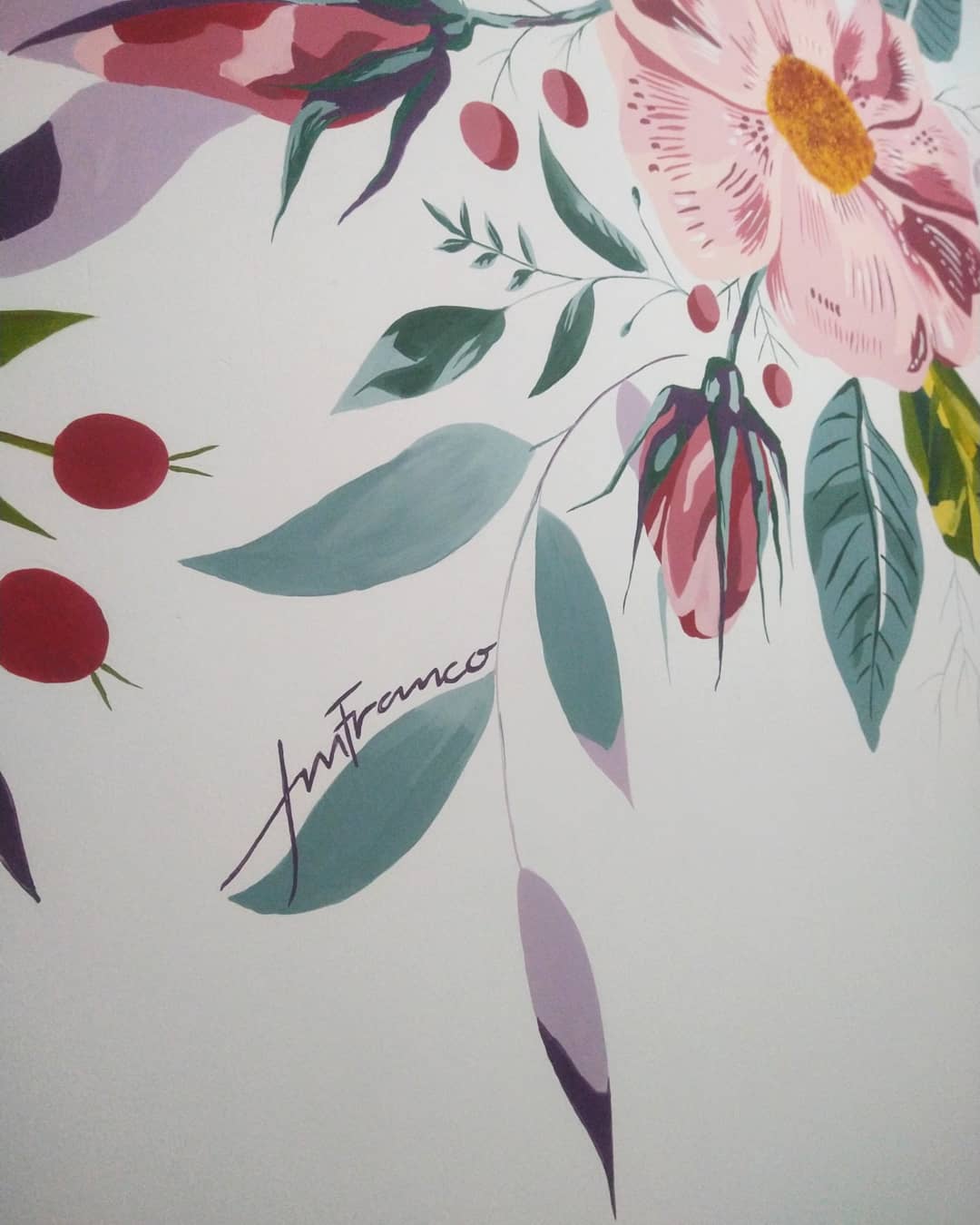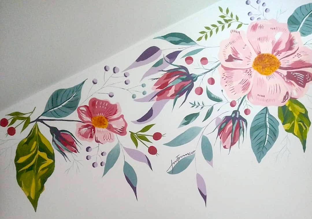 Es espectacular llevar las cosas a un formato mucho más grande… pero eso no es lo mejor. Me siento agradecida por tener las puertas abiertas para dejar un pedacito de mí en el hogar de otras familias, eso le ha dado mucho más valor al disfrute que me produce el olor a pintura y el pincel dejando trazos en la pared.