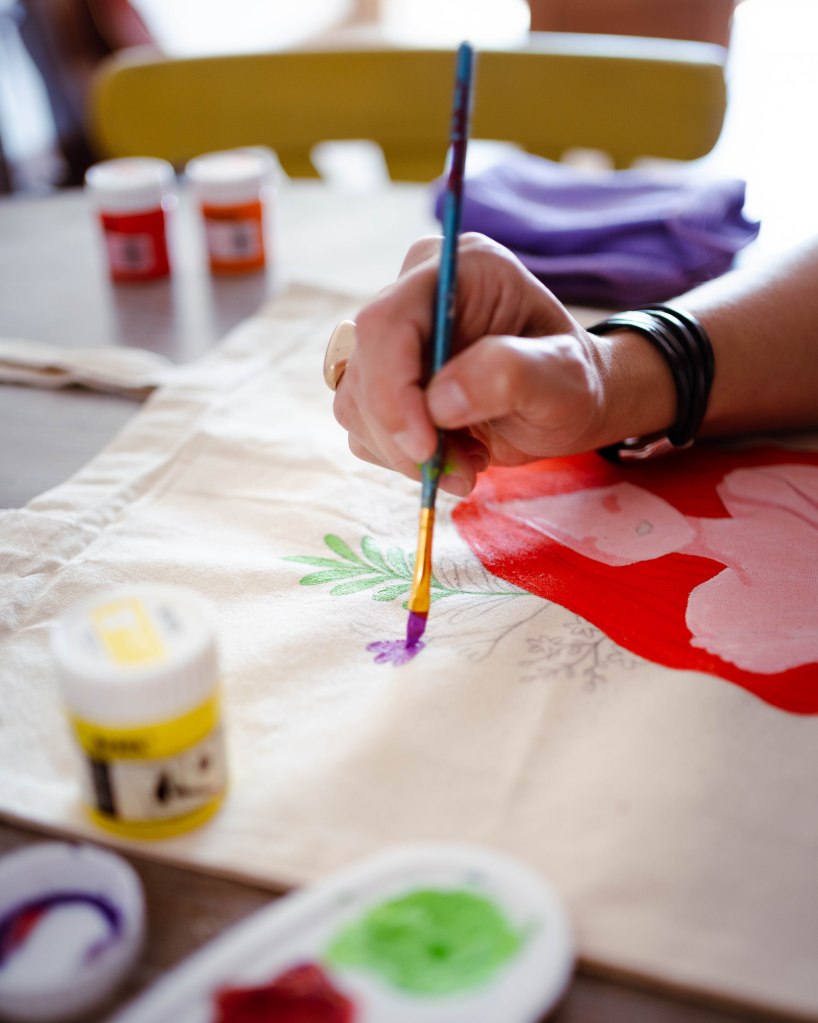 Déjate sorprender por lo que tus manos pueden crear, ven a pintar la que será tu bolsa de tela favorita.