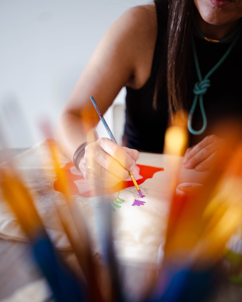 Este taller es el «best seller» en de mi puño · arte. Una tarde llena de color, en la que crearás tu propia obra de arte, que podrás llevar a todas partes. Si quieres expresar tu creatividad haciendo un diseño a tu estilo, o si prefieres relajarte pintando con ayuda de una plantilla para dibujar, este taller es para ti. Un taller para disfrutar del arte y la buena compañía, en un espacio acogedor.