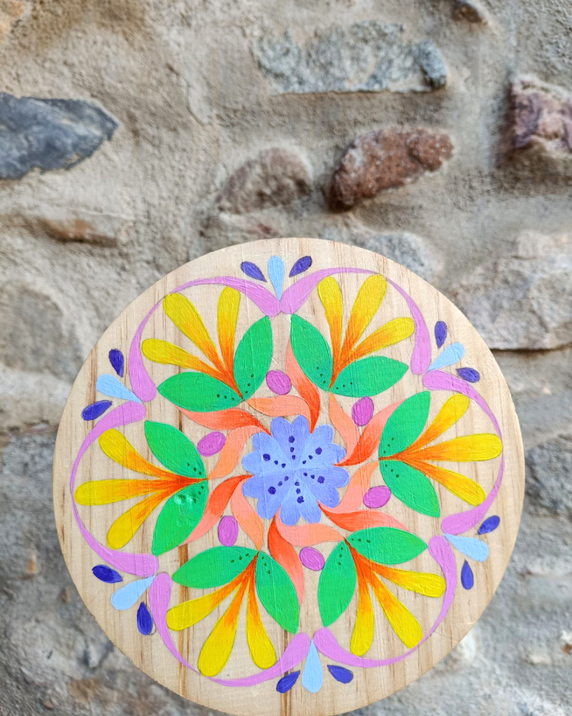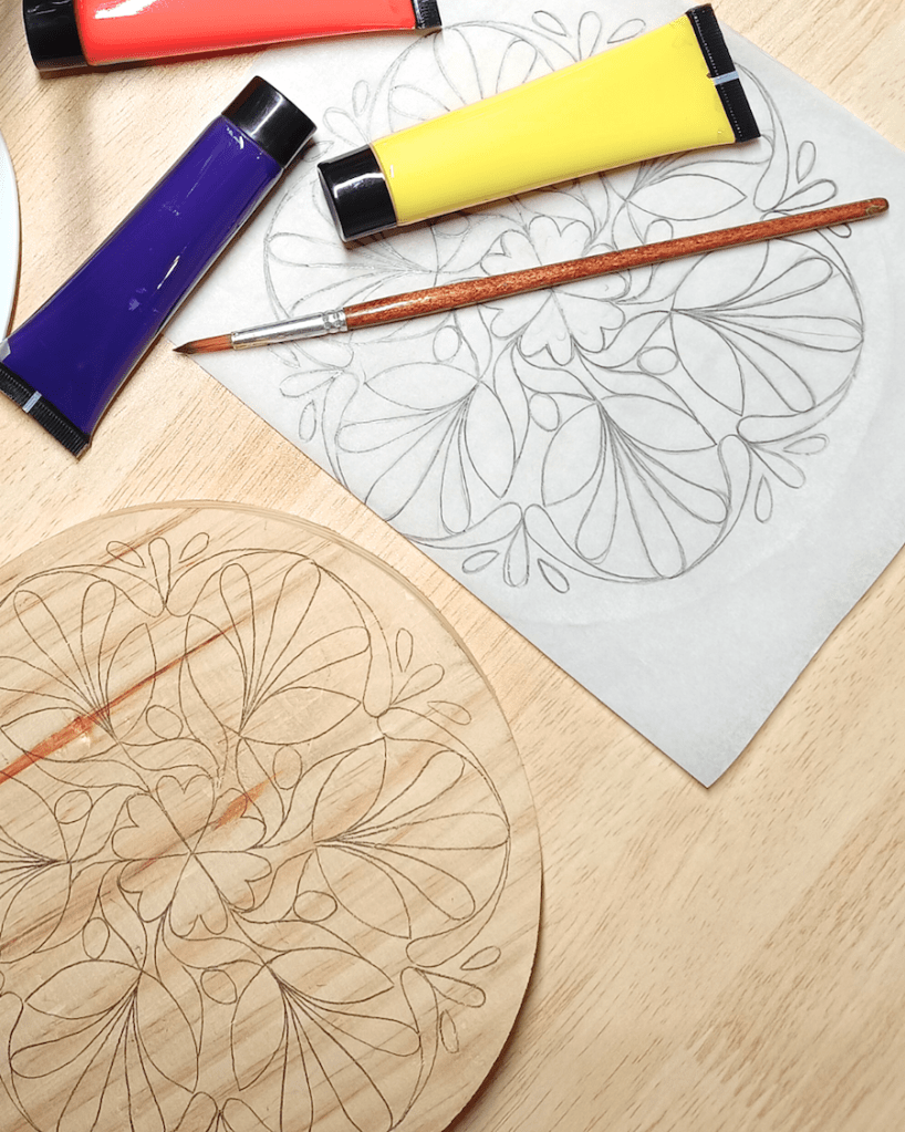 Te mostraré cómo hacer un mandala desde cero y te daré algunas herramientas para que puedas diseñar tantos como quieras, y transferirlos a diferentes superficies. Después lo pintaremos en una tabla decorativa que, estoy segura, te encantará.